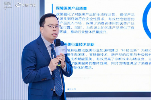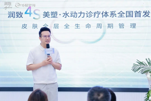 华熙生物医美事业部南中国区总经理孙才华发表致辞,他提到,润致4S美塑·水动力诊疗体系的推出,是润致品牌在医美领域深耕细作的创新成果,该体系以“诊疗一体化”为核心,通过科学评估和个性化方案,实现了皮肤管理的全周期覆盖,旨在打破传统医美模式,引领行业走向合规、科学、个性化的发展道路。