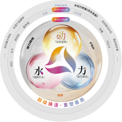 他进一步介绍道,这一体系突破传统分型局限,结合T区/U区特性差异,精准靶向干预皮肤干敏暗纹四大维度的“微笑状态”【4-Smile】,开启合规水光“一人一方案”时代。创新“超级水动力”技术引擎,聚焦皮肤细胞外基质(ECM)微环境重塑,整合水合平衡、营养供给、力学稳态、信号调控四大核心要素,系统性优化皮肤健康。基于4S微笑评估结果,利用润百颜·玻玻【细胞级补水】、润致·缇透【动态营养】、润致·娃娃【微力焕活】等美塑产品矩阵,构建“水动力 - 鸡尾酒疗法”,并灵活组合功效型产品(如屏障修复、胶原再生等)与射频、微针等能量技术,显著提升抗衰效果与体验。
