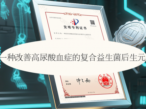 专利益生菌代谢物BCPB01 (专利号:ZL202410421639.X): 该乳酸菌类后生元成分荣获“改善高尿酸血症”中国发明专利,是益生菌经特定工艺处理后的有益代谢产物及菌体片段,稳定性高,耐胃酸,可直达肠道发挥作用。