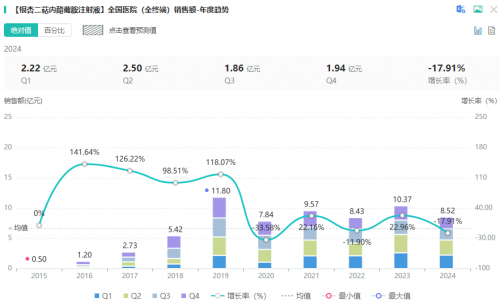 银杏二萜内酯葡胺注射液医院终端年度销售趋势