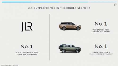我们必须承认的是,在高端超豪华品牌上,捷豹路虎从未缺席,纯电揽胜携200余项专利技术未发先热收获全球6.2万订单、470万中国限定版揽胜SV在一周内售罄,还有中国市场上揽胜系列在150万以上豪华SUV连续27个月领跑,卫士在70-100万区区间同样是销冠。