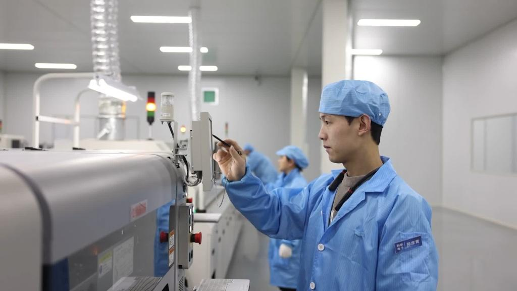 在位于河北省平乡县的河北科昕电子科技有限公司生产车间里,技术员们正在屏幕前调整生产参数。接到指令后,全自动生产线上机械手快速响应,生产出一个个数控器。