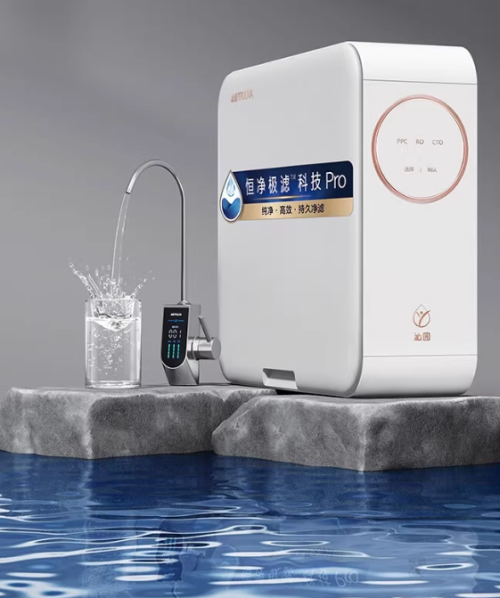 品牌亮点:家电巨头美的自 2006 年布局净水领域,依托全球研发中心,推出星河系列零陈水技术,2024 年线上销量突破50万台。其白泽1000G机型搭载专利帕斯卡RO膜,脱盐率97%,总净水量40吨,获德国红点设计奖。